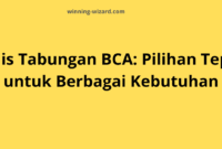 Bank Central Asia (BCA) adalah salah satu bank swasta terbesar di Indonesia dengan layanan yang sangat lengkap, termasuk produk tabungannya yang beragam. Setiap jenis tabungan