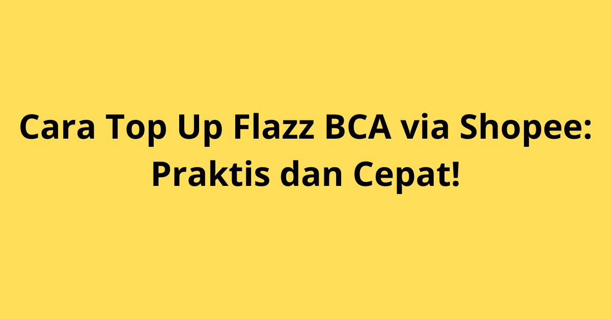 Cara Top Up Flazz BCA via Shopee: Praktis dan Cepat!